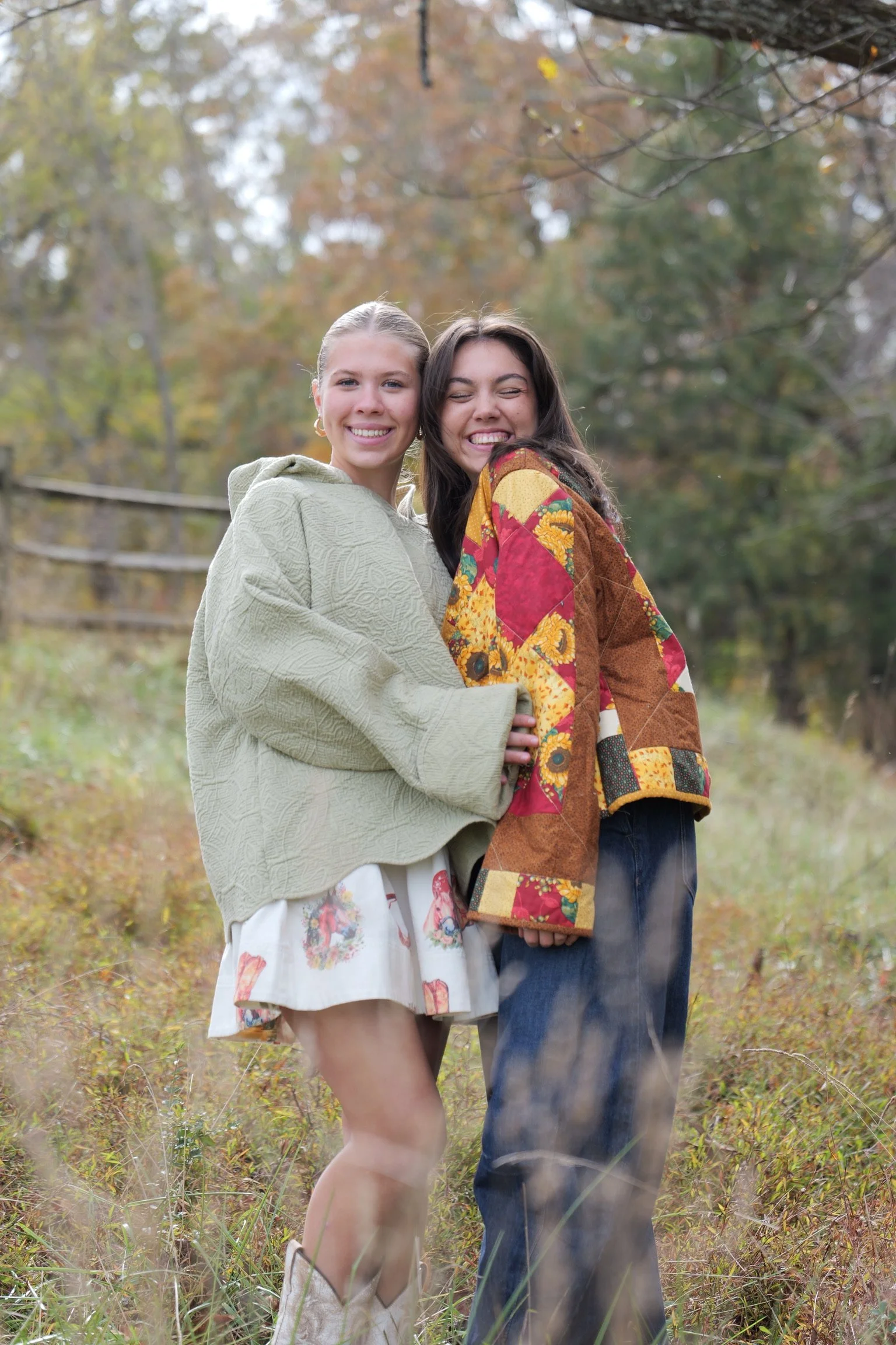 quilted blanket turned into a jacket! super cozy open face jacket perfect for layering!