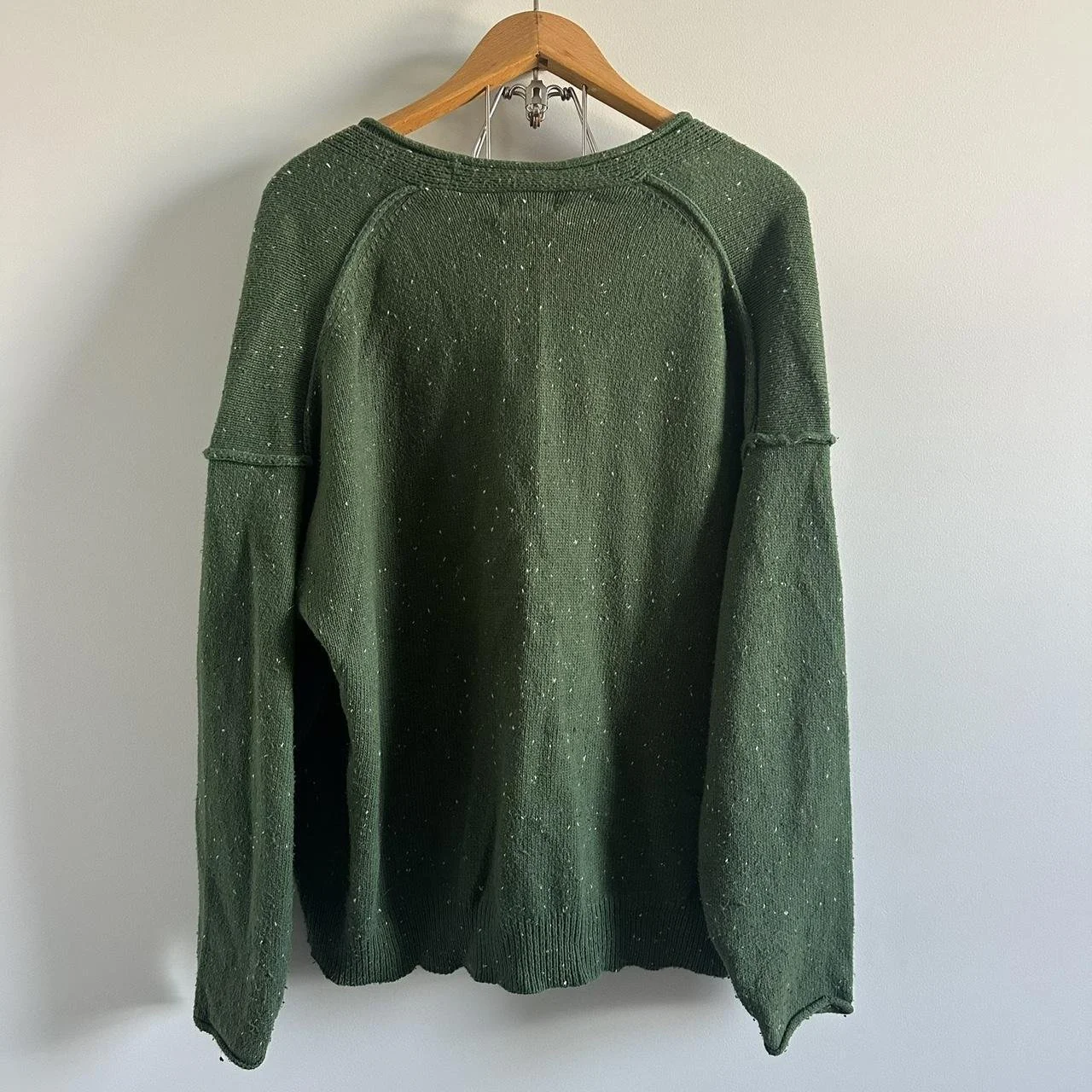 universal threads sweater in a forest green! Super cute and perfect for layering! Does have white speckles throughout the yarn! Cozy and has two detailed pockets in the front! size xl
